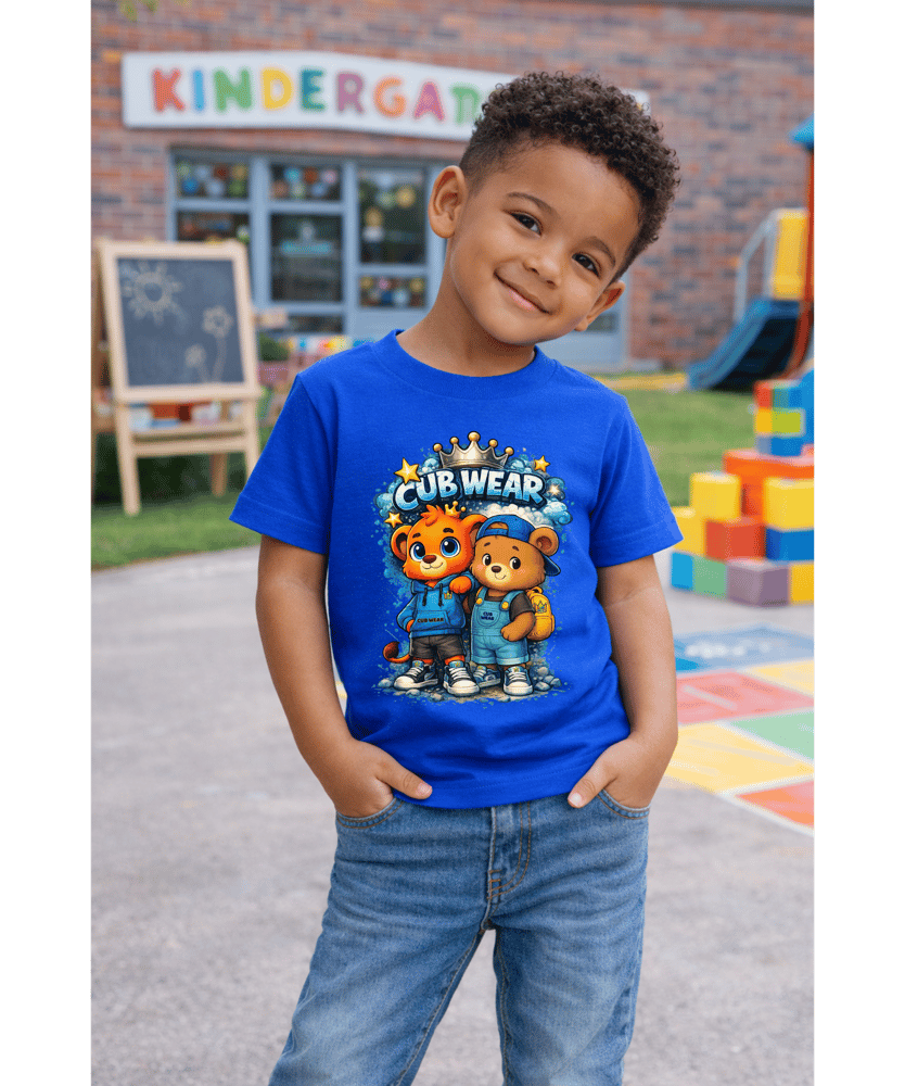 The CUB WEAR™ Royal Leaders Tee is designed for bold little leaders who carry themselves with confidence, kindness, and courage. Featuring our signature cub characters dressed and ready to lead, this tee represents strength, unity, and royal energy.