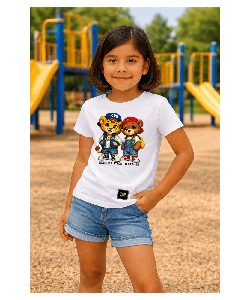 The Leaders Stick Together Tee from CUB WEAR™ features two cub friends ready for school, friendship, and everyday adventures. Designed for elementary school kids, this tee reminds young leaders that teamwork, kindness, and confidence always win.